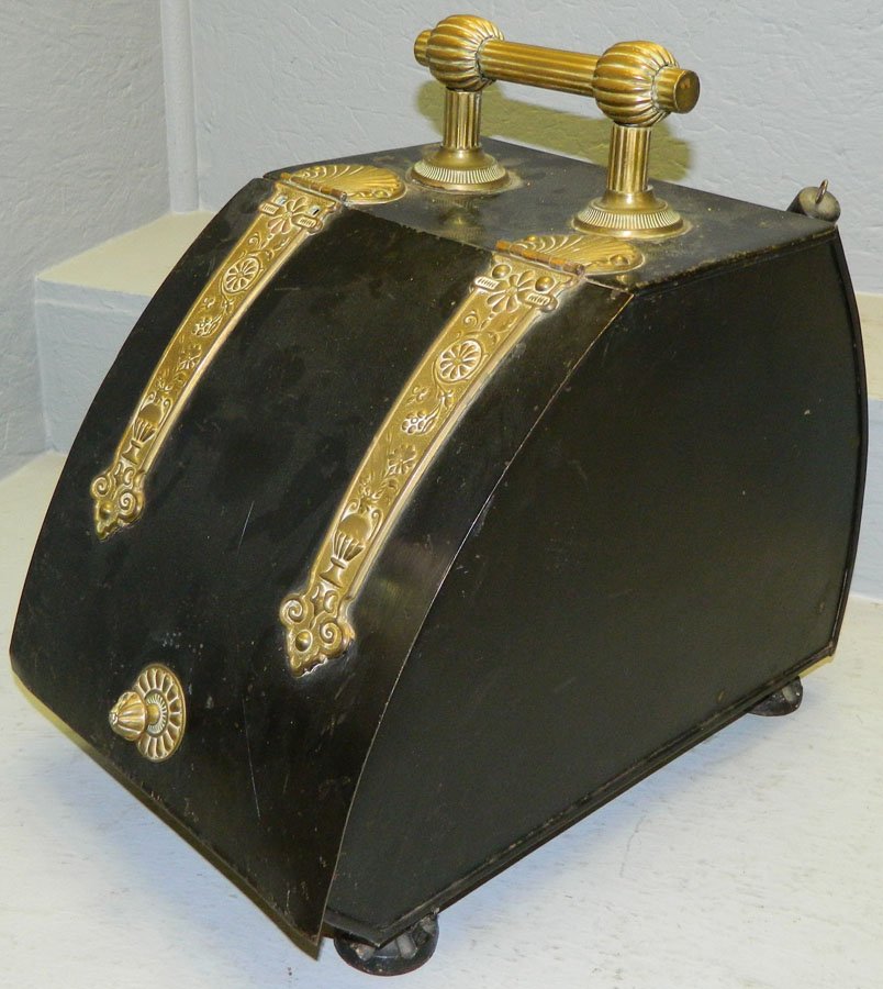 Tole and brass coal scuttle.