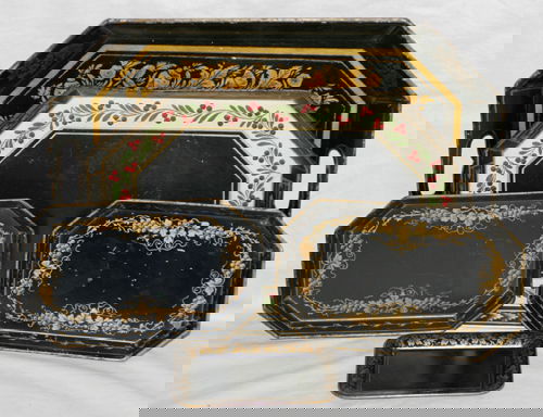 Tole Casket Shaped Trays, Five Pieces