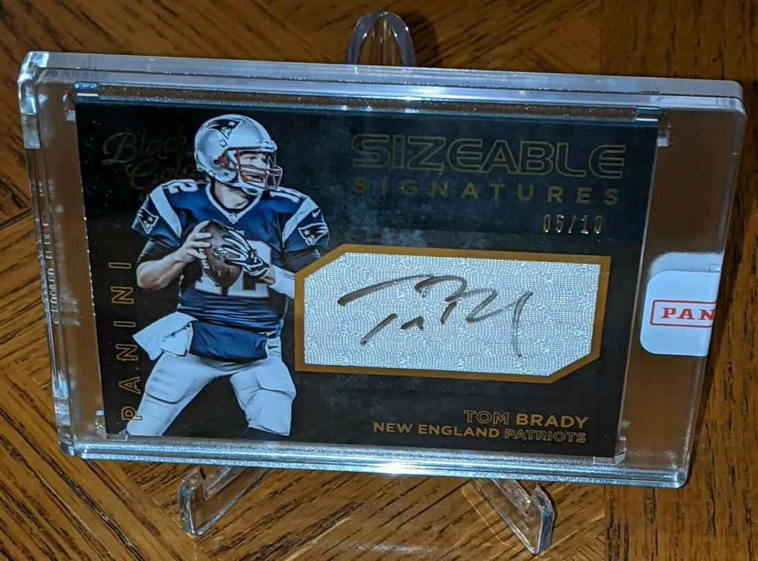 TOM BRADY ON CARD AUTO GAME-WORN MATERIAL SIZEABLE