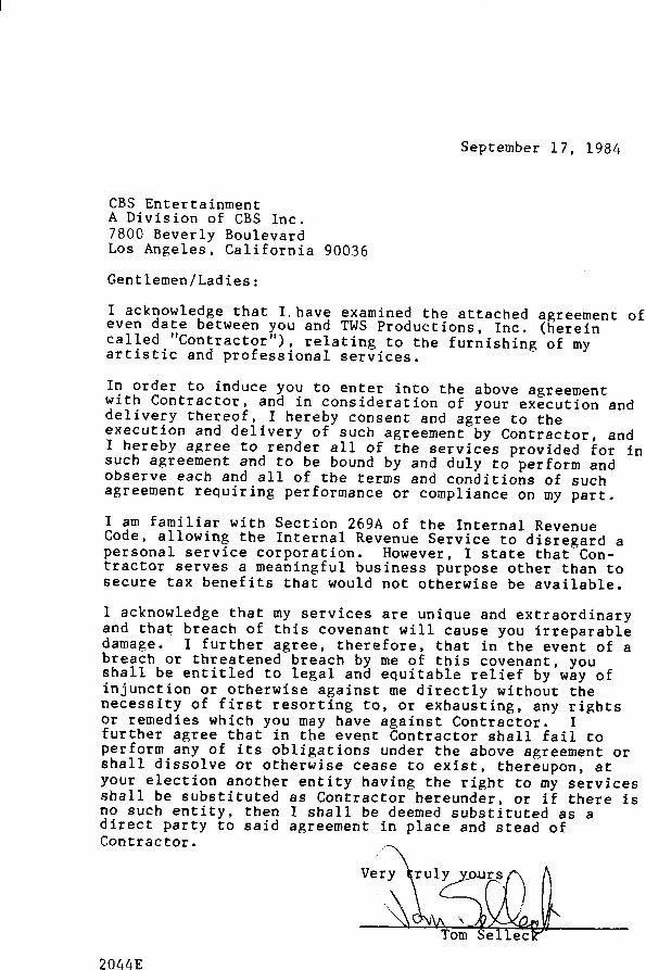 Tom Selleck Document Signed UACC PADA