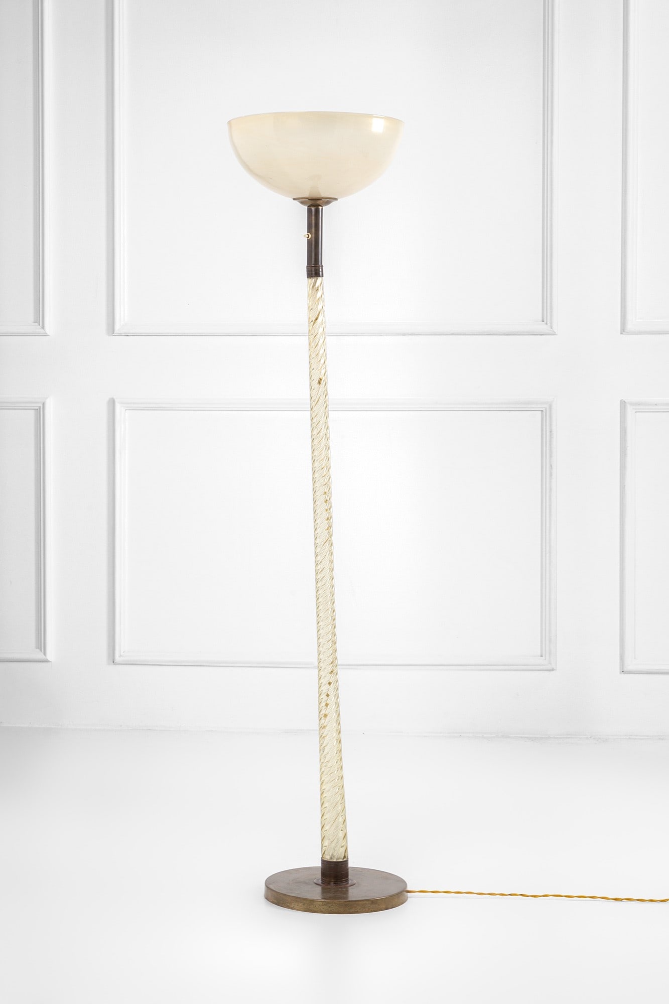 SoldTOMASO BUZZI Lampada da terra con struttura in metalloBUZZI TOMASO (1900 - 1981) Lampada da terra con struttura in metallo cromato e diffusore in vetro e applicazione di foglia d'oro, mod.503, per Venini, Italia, 1930. . . Cm 32,00 x 169,00. PubblicazionSee Sold Price