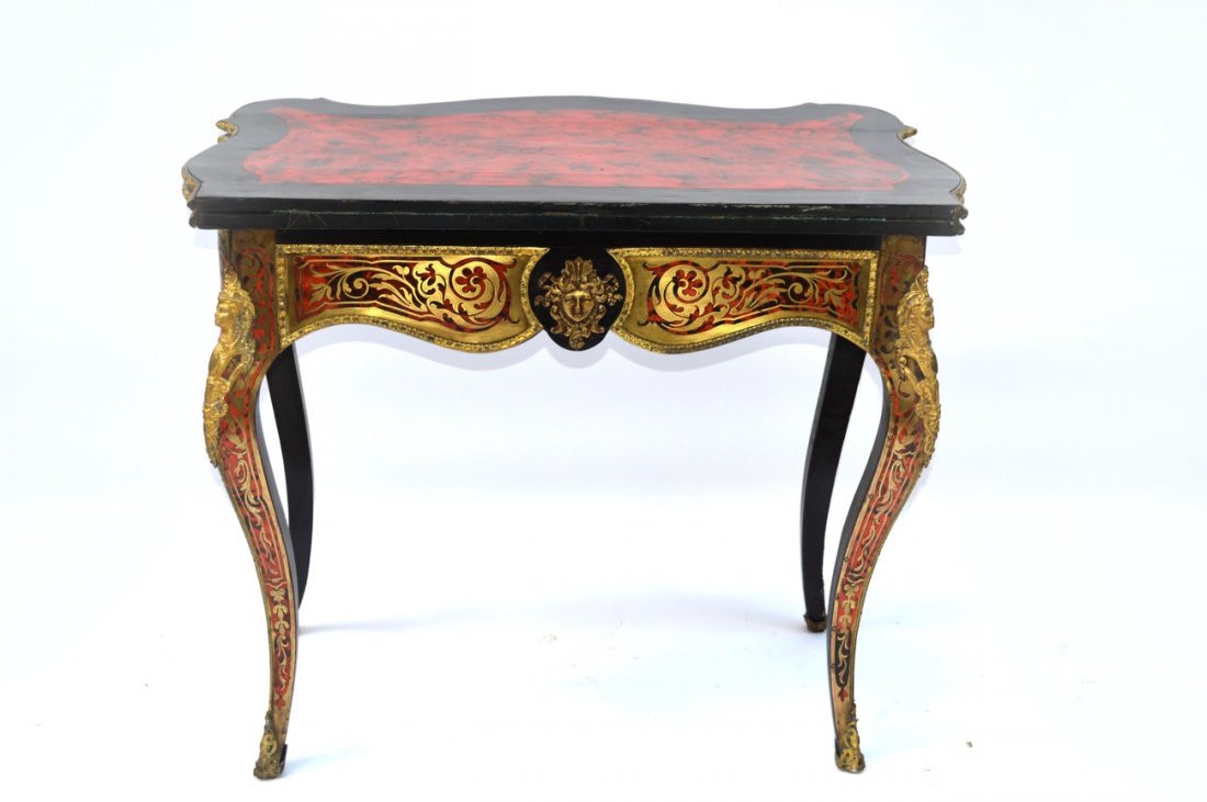 Restored Aesthetic Movement Tiger Tortoise Bamboo 3-Tier Pedestal Side TableITALIAN ROCOCO STYLE MARQUETRY INLAID & PARCEL-GILT TABLEFeb 22, 2026Antique French Rosewood Marquetry Inlay Fold Over Top Game Table With Bronze MountsFeb 16, 2026French Empire Ebonized Wood and Boulle Inlaid Desk, 1840, H 29.75" W 53" Depth 29.75"Feb 19, 2026FRENCH LOUIS XV STYLE MARQUETRY & MAHOGANY FLIP-TOP GAMES TABLEFeb 22, 2026BOULLE INLAID BRONZE SEWING STANDFeb 19, 2026A LOUIS XV ORMOLU-MOUNTED KINGWOOD AND TULIPWOOD BUREAU PLAT CIRCA 1750, LATER MOUNTEDFeb 18, 2026Elegant Louis XV Style Mahogany Side Table with Brass Gallery3 days LeftAntique French Card Table Ebonized Ormolu Inlay C1880Feb 15, 2026Louis XV Style Black Enamel on Wood One-Drawer Turtle-Top Center Table w/Gilt Gold Details2 days LeftChippendale Style Mahogany Console Table with Marble Top6 days LeftANGLO-INDIAN SPECIMEN WOOD INLAID EBONIZED PEDESTAL TABLEFeb 22, 2026Parlor Table, Turtle Top With White Marble, Walnut With Carved Fruit & Fruit BasketMar 21, 2026Scarborough House Hand Painted Ebony Gilt Console Table Chinoiserie Style2 days LeftMaitland Smith 8128-34 Mahogany Console Table with Gold Accents6 days LeftEXQUISITE GEORGE III PAINT DECORATED PEMBROKE TABLEFeb 21, 2026