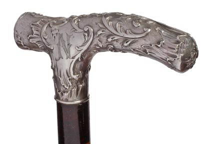 Tortoise Shell And Silver Cane C. 1880 A Full Sha