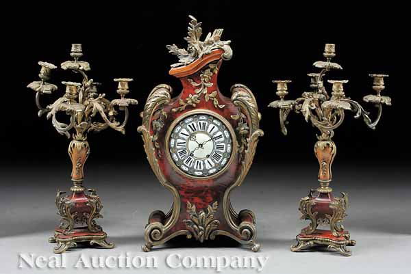 (3) FRENCH LOUIS XVI STYLE ORMOLU-MOUNTED MARBLE CLOCK & CANDELABRA GARNITURE SETMar 29, 2026Magnificent French Monumental Mercury Gilt Bronze Figural Clock Set By L. Marchand6 days Left(3) FINE FRENCH SILVERED & GILT-BRONZE CHINOISERIE MANTEL CLOCK & GARNITURE SETMar 29, 202619th C. Beurdeley 3 Pc. Gilt Bronze Mounted Marble Clockset w/ Wedgewood Plaques, Circa 18806 days Left(3) FRANZ HERMLE LOUIS XIV STYLE MANTEL CLOCK & CANDELABRA GARNITURE SETMar 29, 2026An Exceptional Three-piece Mantel Garniture, Lerolle Frères, clock and candelabra, Ormolu bronzeApr 01, 2026Louis XVI Style Gilt Bronze Mounted Blue Turquin Marble Three Piece Clock Garniture Paris Circa 18751 day LeftFrench Tiffany & Co Bronze & Champleve Enamel Clock Set5 days LeftSet of 3 French Ormolu Bronze Louis XVI Mantel Clock with Sevres Style Candelabra932 Lots Away(3) FRENCH LOUIS XV STYLE GILT-METAL MANTEL CLOCK & CANDELABRA GARNITURE SETMar 29, 2026A three-piece garniture clock and candelabra, gilt bronze mounted on Carrara marble. Allegory ofApr 01, 202619th C. Ormolu Mounted Berlin KPM Porcelain Clock Set3 days LeftVictor Évrard (1807-1877) 'Cupid and Venus', a large three-piece mantel garniture, clock and sideApr 01, 202619th Century French Gilt Bronze & Marble Clock Garniture Set with Candelabra Lamps1 day LeftFrench 19th Century Ormulu Garniture Mantel Clock SetMar 29, 2026ANTIQUE FRENCH SEVRES PORCELAIN AND BRONZE BOUDOIR SETApr 11, 2026
