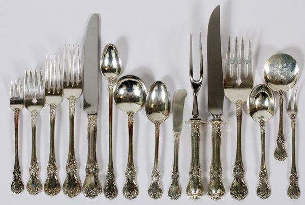 Lot of Sterling Silver FlatwareMar 07, 2026Wallace Grande Baroque Sterling Silver Flatware Service for 12, 86.5 t oz 72 PCS2 days LeftSet Of 83 Pieces Of Stainless Steel Floral Design Silverware A6 days LeftTOWLE STERLING FLATWARE SET, OLD MASTER PATTERN.Feb 25, 2026(34pc) Sterling Flatware SetFeb 24, 2026(217 pc) Gorham Melrose Sterling Silver Flatware SetFeb 24, 2026S. KIRK STERLING FLORAL REPOUSSÉ FLATWARE, 84PCS.Feb 25, 2026(124pc) Reed & Barton Hepplewhite Sterling Flatware SetFeb 24, 2026(76pc) Gorham Buttercup Sterling Silver Flatware SetFeb 24, 2026(18pc) Reed & Barton Francis 1st Sterling Flatware SetFeb 24, 2026(75pc) Gorham Melrose Sterling Silver Flatware SetFeb 24, 2026Stieff Sterling "Rose" Flatware ServiceFeb 26, 2026(82pc) International Richelieu Sterling Flatware SetFeb 24, 2026GROUP OF VARIOUS-PATTERNED SILVER FLATWARE, 2682gFeb 25, 2026Towle King Richard Sterling FlatwareFeb 25, 2026(67pc) Gorham Sterling Fontainbleau Flatware SetFeb 24, 2026
