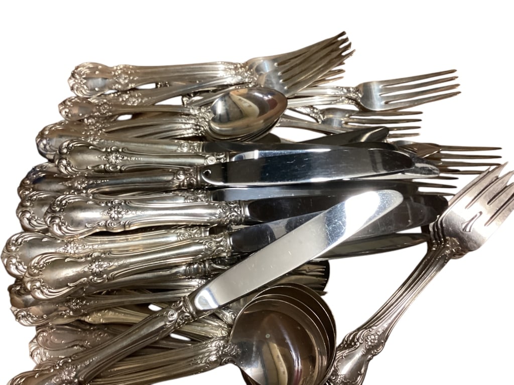 SoldOld Master Towle Sterling Silver Flatware ServiceSterling Silver Flatware Service. Originally for ten but unfortunately some pieces are missing. There are 10 knives, 10 dinner forks, 10 salad forks, 16 teaspoons, 7 soup spoons, 8 butter spreads, a lSee Sold Price