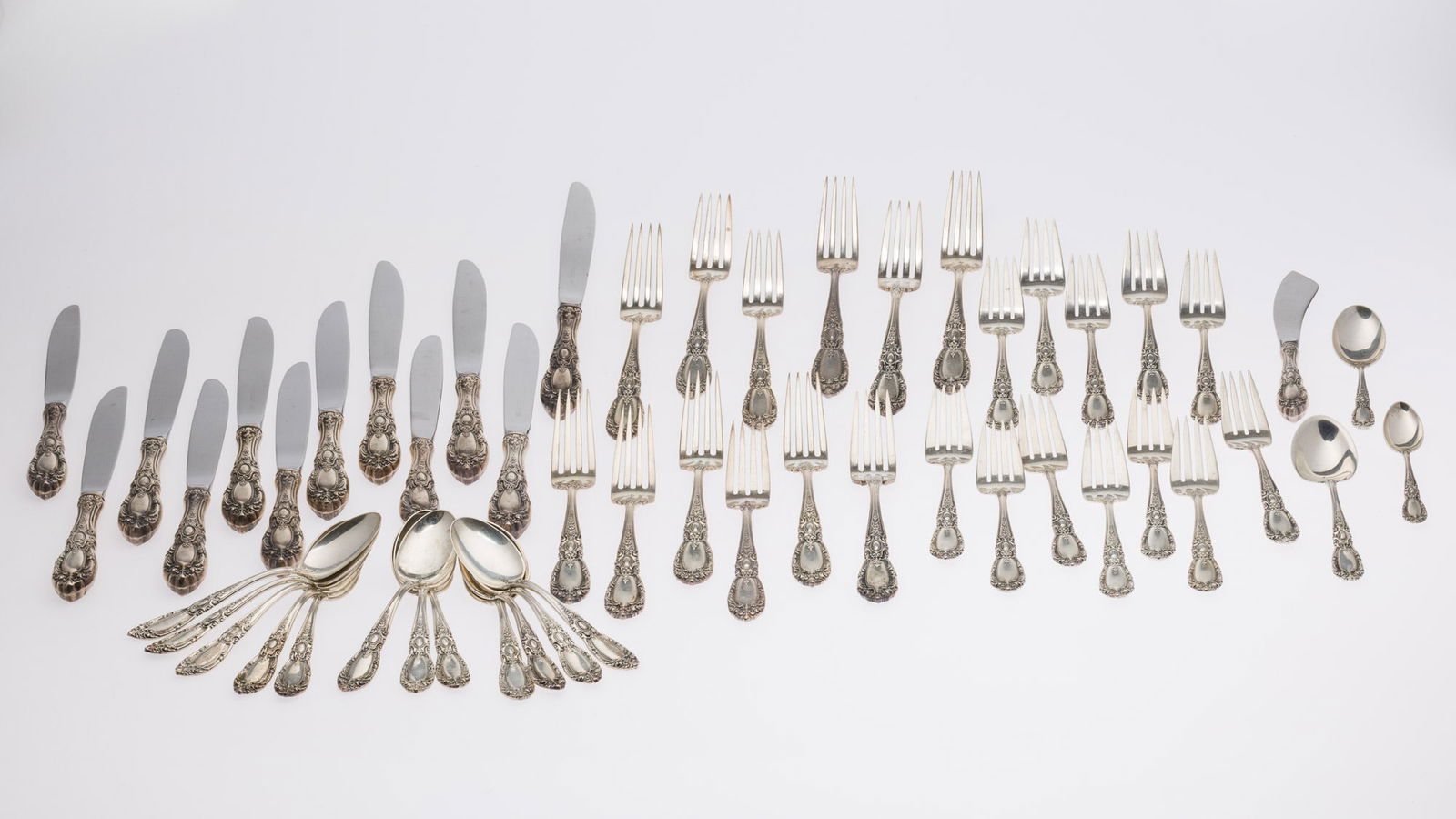 Lot of 36 Cromargan Flatware, Stainless SteelMar 21, 202613PC LOT OF STERLING SILVER FLATWARE, 17 T.O.W.289 Lots AwayTowle "Old Master" Sterling Silver Flatware Partial Service for 8Mar 19, 2026Reed and Barton "Francis I" Sterling Silver Flatware Service for 8 With ExtrasMar 19, 2026Lunt "Delacourt" Sterling Silver Flatware Partial Service for 12Mar 19, 2026Gorham "Rondo" Sterling Silver Partial Flatware Service for 4Mar 19, 2026Reed and Barton "Francis I" Sterling Silver Flatware Service for 7 With ExtrasMar 19, 2026International / Fine Arts "Processional" Sterling Silver Flatware Service for 10 With ExtrasMar 19, 2026Fine Arts "Processional" Sterling Silver Flatware Service for 7 With ExtrasMar 19, 2026Reed and Barton "Dancing Flowers" Sterling Silver Flatware Partial Service for 18Mar 19, 2026Towle "King Richard" Sterling Silver Flatware Service for 6 With ExtrasMar 19, 2026Amston "Donatello" Sterling Silver Flatware Service for 12 With ExtrasMar 19, 2026Stieff "Corsage" Sterling Silver Flatware Service for 8Mar 19, 2026Lunt 'Alexandra' Sterling Silver Flatware Service,Sterling Silver Flatware, Towle Craftsman (32pc)Mar 28, 2026Rogers "Breton Rose" Sterling Silver Flatware Service for 6Mar 19, 2026
