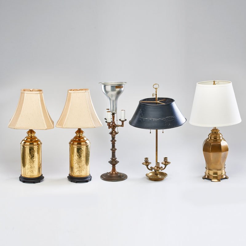 Lot of 3 Lamps, Sterling Tobacco Tin & Brass Candlestick6 days LeftLot of 3 Copper Lights, Outdoor Lantern Sconce and Hanging Lights6 days LeftLot of 8 Mixed Metal Light Fixtures6 days LeftBrass Candlesticks and Candelabra, Group of 5Feb 26, 2026THREE ANTIQUE CAST BRONZE TABLE LAMPSMar 07, 2026Three Brass Table Lamps5 days LeftCollection of Brass Table Lamps and Candle HoldersMar 05, 2026Four Table Lamps5 days LeftGroup of Six Carved Wood Table Lamps5 days LeftFIVE METAL FLUID LAMPS Second Half of the 19th Century Heights from 5" to 14.5".Mar 04, 2026Industrial Articulating Table Lamp5 days LeftFour Table Lamps5 days LeftGROUP OF THREE BOHEMIAN GLASS TABLE LAMPS5 days Left3 Brass Table LampsMar 03, 2026Seven pieces of early lighting includes: two Coleman style lamps w/ milk glass shades, two brassFeb 24, 2026NINE BRASS LIGHTING DEVICES 19th Century Heights from 7" to 15.5".Mar 04, 2026
