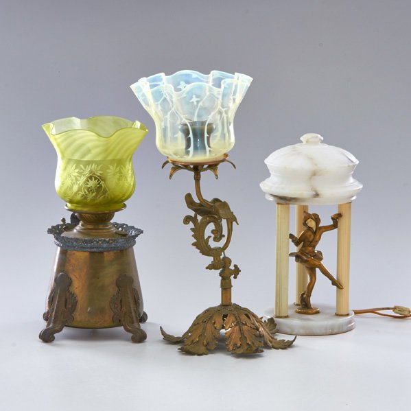 Lot of 3 Lamps, Sterling Tobacco Tin & Brass Candlestick5 days LeftLot of 3 Copper Lights, Outdoor Lantern Sconce and Hanging Lights5 days LeftLot of 3 Neoclassical Alabaster Lamps5 days LeftA lot of two decorative vintage table lamps, both decorated with shellsFeb 24, 2026Estate Lot of 2 Chinese Table Lamps - Soapstone Figural & Famille Noir Painted PorcelainMar 15, 2026Group of Three Antique Glass Oil LampsMar 15, 2026Brass Candlesticks and Candelabra, Group of 5Feb 26, 2026THREE ANTIQUE CAST BRONZE TABLE LAMPSMar 07, 2026Pair of Early 20th Century Porcelain and Brass Table LampsFeb 26, 2026GROUP OF THREE BOHEMIAN GLASS TABLE LAMPS5 days LeftThree Brass Table Lamps5 days Left3 Brass Table LampsMar 03, 2026Collection of Brass Table Lamps and Candle HoldersMar 05, 2026Four Table Lamps5 days LeftFour Table Lamps5 days Left3 Asian Porcelain Table Lamps on Wood Bases6 days Left