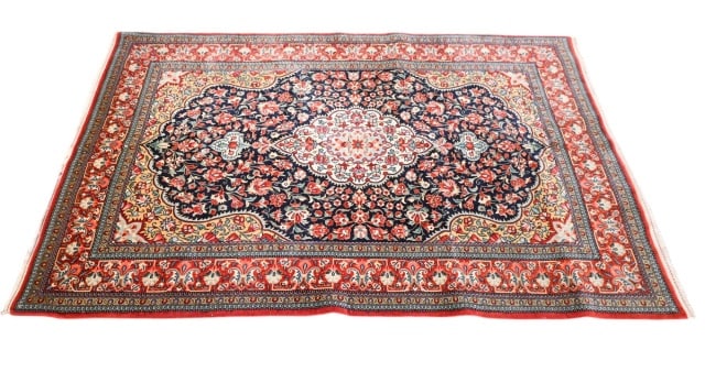 SoldFine Persian Silk and Wool Area Rug, hand knottedFINE PERSIAN SILK AND WOOL AREA RUG, hand knotted in traditional floral and central floral medallion design on cream ground, 50 RAJ (330 kpsi) quality, 4'10" x 7'0"See Sold Price