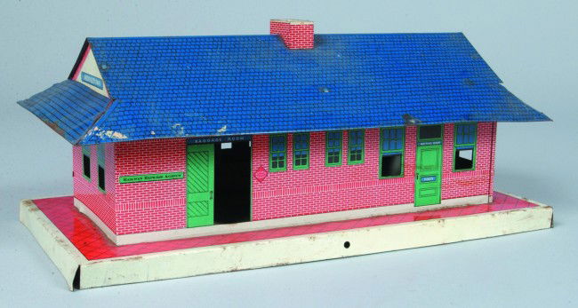 Train Station, lithograph tin with light, marked