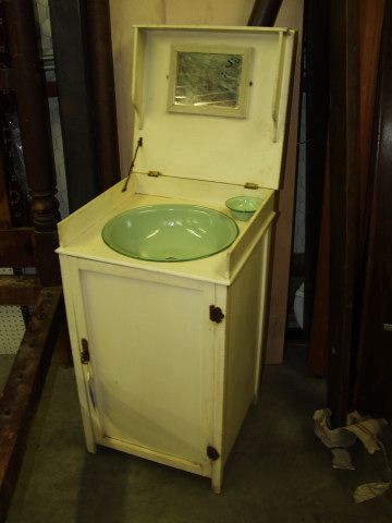 SoldRARE MATCHED PAIR OF COUNTRY PAINT DECORATED WASH STAND IN YELLOW AND A 1 DRAWER STAND WITHRARE MATCHED PAIR OF COUNTRY PAINT DECORATED WASH STAND FOR BOWL AND PITCHER IN YELLOW AND A 1 DRAWER STAND WITH BACK SPLASH NEW ENGLAND C1830 WITH LABELS 18X 38 WASHSTAND, 30X16X37 DRESSING STAND, PRSee Sold Price