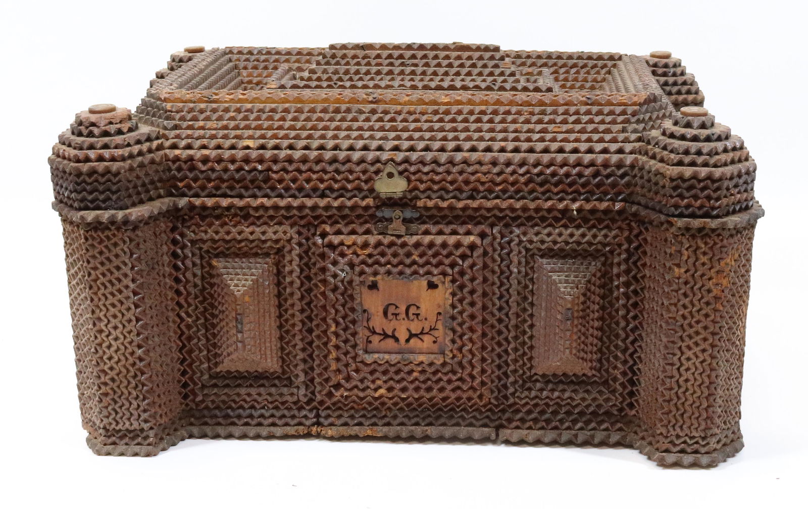A Paint-Decorated Poplar Box7 hrs LeftChip Carved Cigar BoxFeb 14, 2026PAINT-DECORATED WOODEN BOX America, Late 19th Century Height 5.5". Width 10.5". Depth 7".1 day LeftCarved Wood Box With Metal Brads And ReinforcementFeb 20, 2026EARLY DOVETAILED CHEST5 days LeftIndian Brass Mounted Carved Wood ChestMar 26, 2026FOUR CARVED WOODEN BOXES 19th Century Lengths from 7.5" to 20".Feb 18, 2026Chinese Brown Mop Inlay Motif Square Storage Box ChestAntique Dome Top Steamer TrunkFeb 10, 2026Antique English Black Lacquer Tea Caddy & CanisterFeb 05, 2026Tramp Art Chest with Decoupage Illustrations Under Glass Lift-top & Drawers 1920Feb 05, 2026Unique Vintage Tramp Art Box with Mirror and Personal DetailsFeb 07, 202618TH C. BRITISH DOME TOP DOCUMENT BOXFeb 21, 2026Vintage Inlaid Wood Marquetry Keepsake BoxFeb 11, 2026A piece of depiction of gold, wood, and lacquerware food box cabinets2 days LeftSwiss Cylinder "6-Airs" Marquetry Music BoxMar 26, 2026
