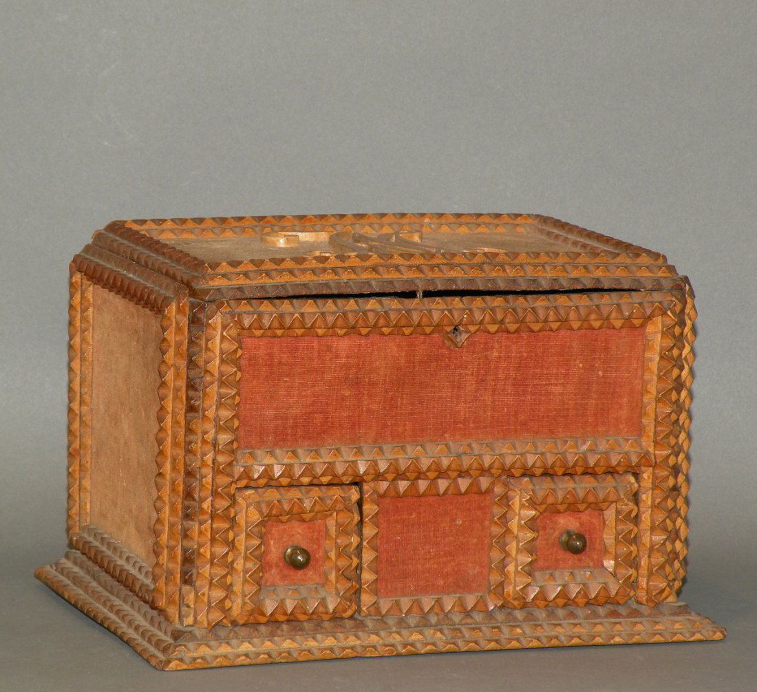 Grain painted lift top blanket chest, dovetailed with overset hinges, poplar boards, unfooted,Feb 24, 2026Paint decorated Pennsylvania lift top blanket chest, dovetailed, painted floral panels, early lockFeb 24, 2026Pennsylvania Blanket Chest, old red paint on poplar, brass fittings, dovetailed, on ChippendaleFeb 24, 2026Marquetry Inlaid Mahogany with Inlays Tea Caddy, Ca. 20th Cent., H 5.25" W 10" Depth 6"2 days LeftAntique Polyphon Disc Music Box with Illustrated Lid Interior6 days LeftUnusual Wood Studio burlwood box2 days LeftWood 3 Drawer Jewelry Chest1 day LeftIndian Brass Mounted Carved Wood ChestMar 26, 2026Dome Top hinged lid box, figural insert, brass hardware. Interior secondary lid. 16"W x 12"T x 10"DFeb 24, 2026Outstanding Antique Marquetry inlaid wooden coffin jewelry/trinket chestMar 09, 2026Brass Bound Dovetailed Mahogany Traveling Desk Box with Three Hidden Drawers, 19th CenturyFeb 28, 2026German Baroque Inlaid Gilt-Metal-Mounted Walnut Chest of DrawersFeb 26, 2026VINTAGE ASIAN WOOD CHEST INLAID MEDALLIONS & BRASS7 days LeftEARLY 19TH C. TEA CADDY WITH CONCH SHELL INLAY4 days LeftVintage Boho Ebony Mahogany Blanket Chest with Brass Hardware4 days LeftAmerican Federal Chest of Drawers, Dated 1856Mar 07, 2026