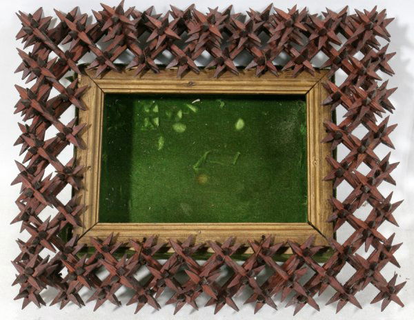 TRAMP ART, PINE SHADOW BOX PICTURE FRAME, C1930