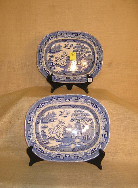Transfer ware. Blue willow. 19th century platters.
