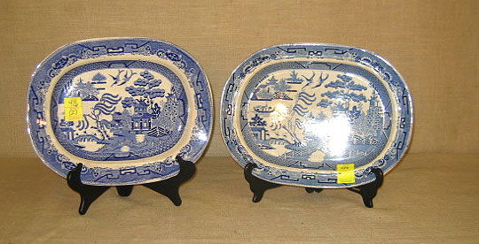 Transferware. Blue Willow. 2 platters. wire cut