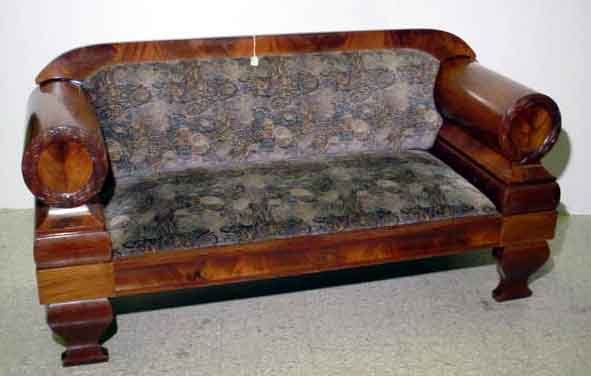 TRANSITIONAL EMPIRE STYLE MAHOGANY UPHOLSTERED SOF