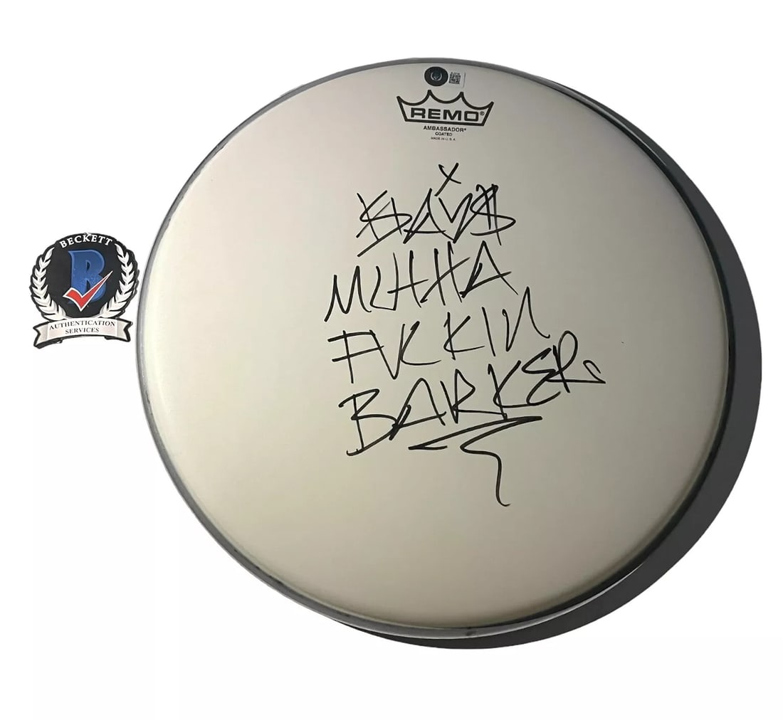 Travis Barker Signed Autograph Drumhead BAS COA Blink 182