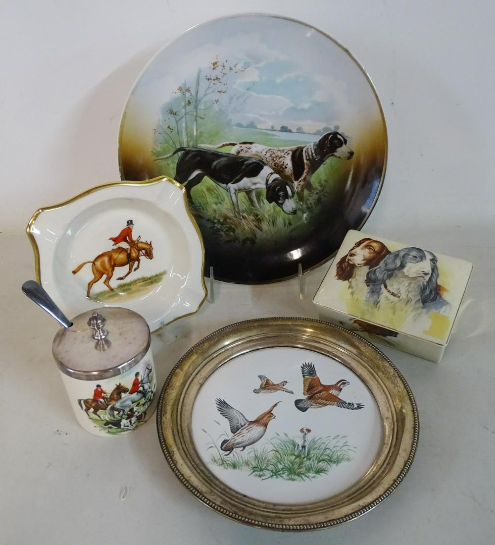 TRAY LOT DOG FIGURAL PORCELAIN ITEMS INCLUDING POINTER
