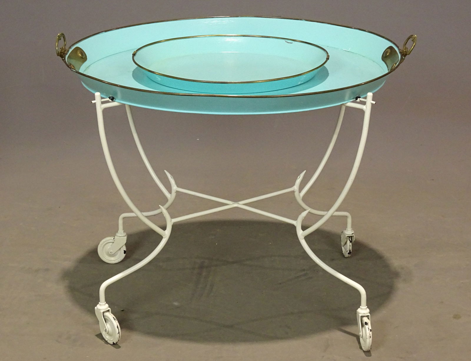 Hollywood Regency Style Mirrored Gueridon, Center Table, Silver Gilt, Lion HeadsFolding Coffee Table with Brass Charger TrayY2K Space Age Mod Side Pedestal Table by William EmmersonRolling Tray Table5 days LeftTray TableFeb 12, 2026Modern 70's. Plastic Base Coffee Table with glass and plastic.Feb 08, 2026Vintage rams heads & foot coffee table manner Jansen5 days LeftMoroccan Tray with Legs Made of Brass1 day LeftMaitland Smith Style Neoclassical Glass Top Iron and Brass TableBaker Coffee Table, Wood Spool Form Base with Glass & Brass Trim, Removeable Tray Top7 hrs LeftMahogany Butlers Tray Top TableFeb 07, 2026Contemporary Steel Bar Cart2 days LeftFoliate Form Red Wrought Iron Glass Top Side TableMar 26, 2026HABERSHAM FURNITURE ANTIQUE REPRODUCTION TAVERN TABLE 20th Century Height 27". Diameter 24".2 days LeftCharles Hollis Jones Style Lucite Rolling TableFeb 10, 2026Painted Solid Wood Side Table