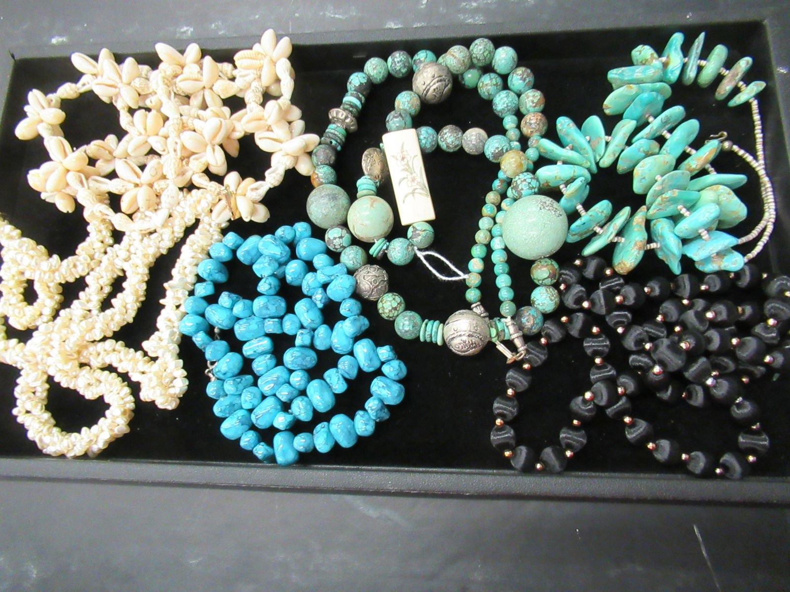 TRAY WITH TURQUOISE NECKLACES ETC