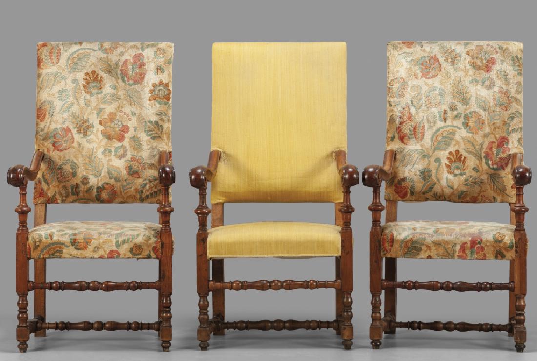 Tre poltrone a rocchetto in noce, sec.XVII
