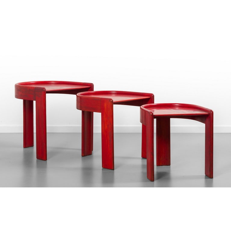 TRE TAVOLINI SOVRAPPONIBILI, anni '70. Legno