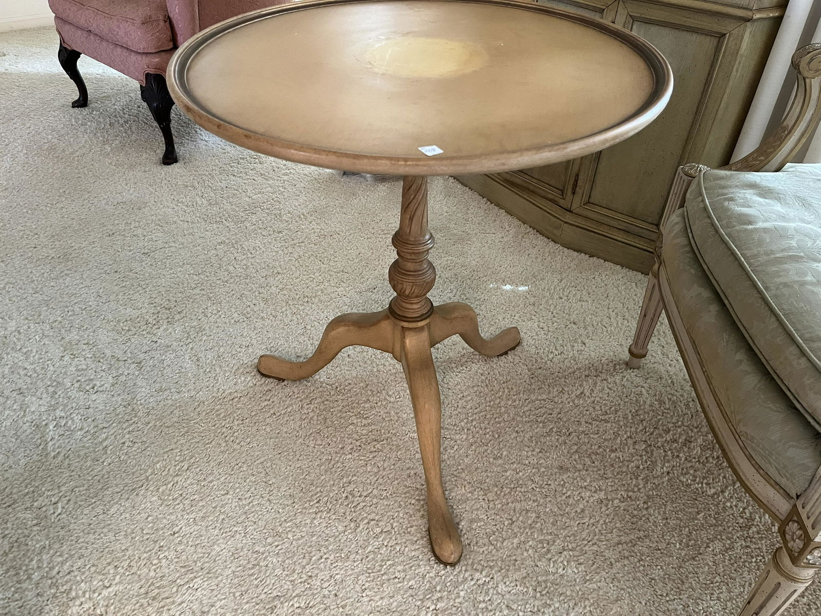 SoldTRI LEG END TABLEWood. Pie crust top. With compartment. 20 5/8" h x 14 3/4" w x 20" d.See Sold Price