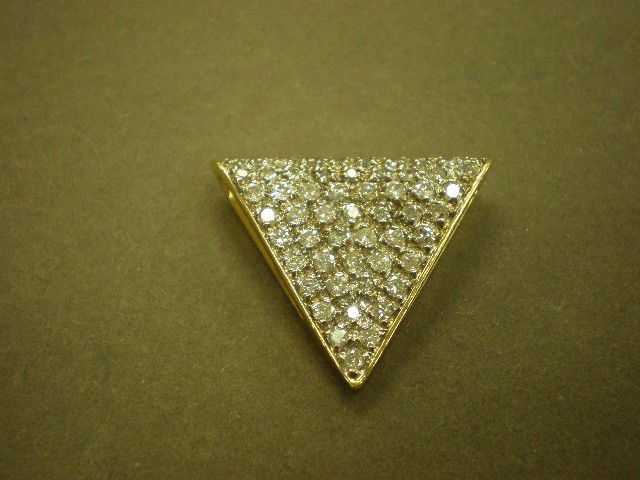 Triangular diamond pendant. 14K yg (tested) with p
