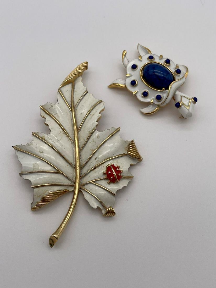 Pair Crown Trifari Enamel Brooches