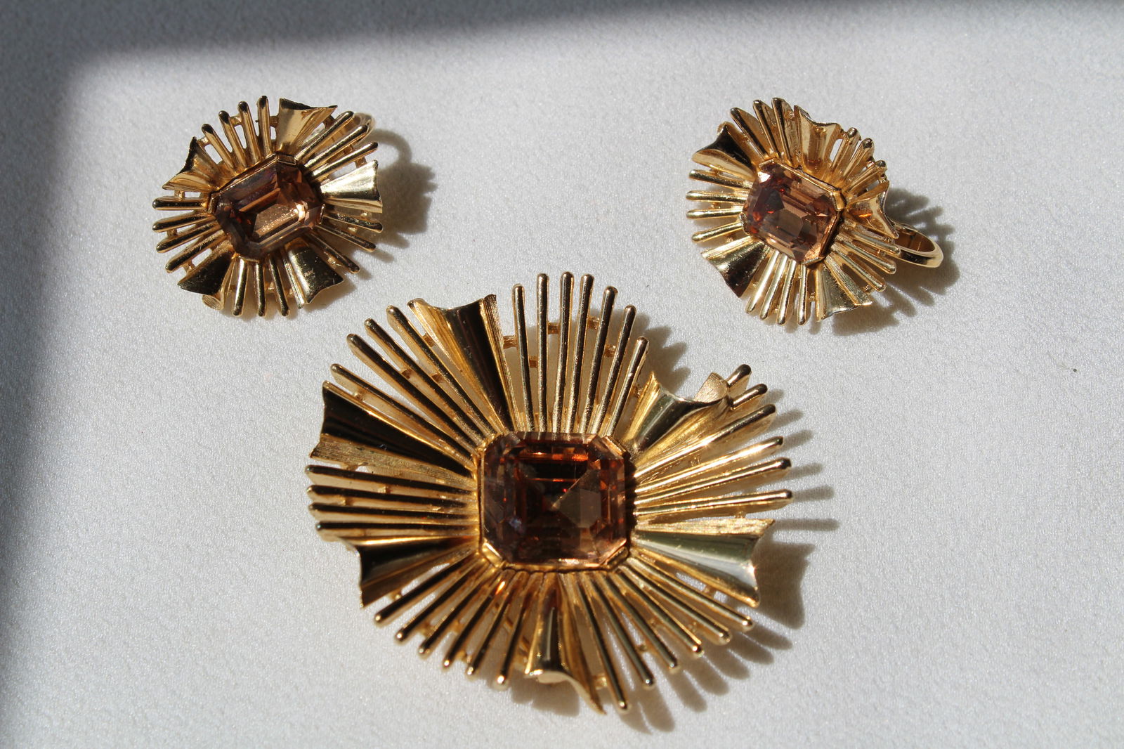 TRIFARI RETRO BROOCH AND EARRINGS SET