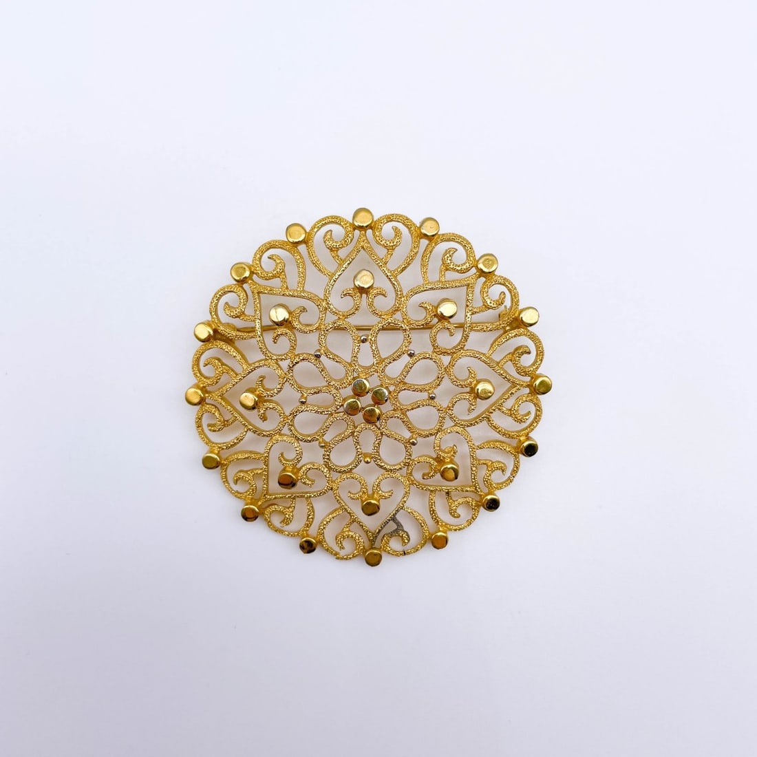 ANTIQUE FILIGREE STERLING SILVER BROOCH GOLD-TONE