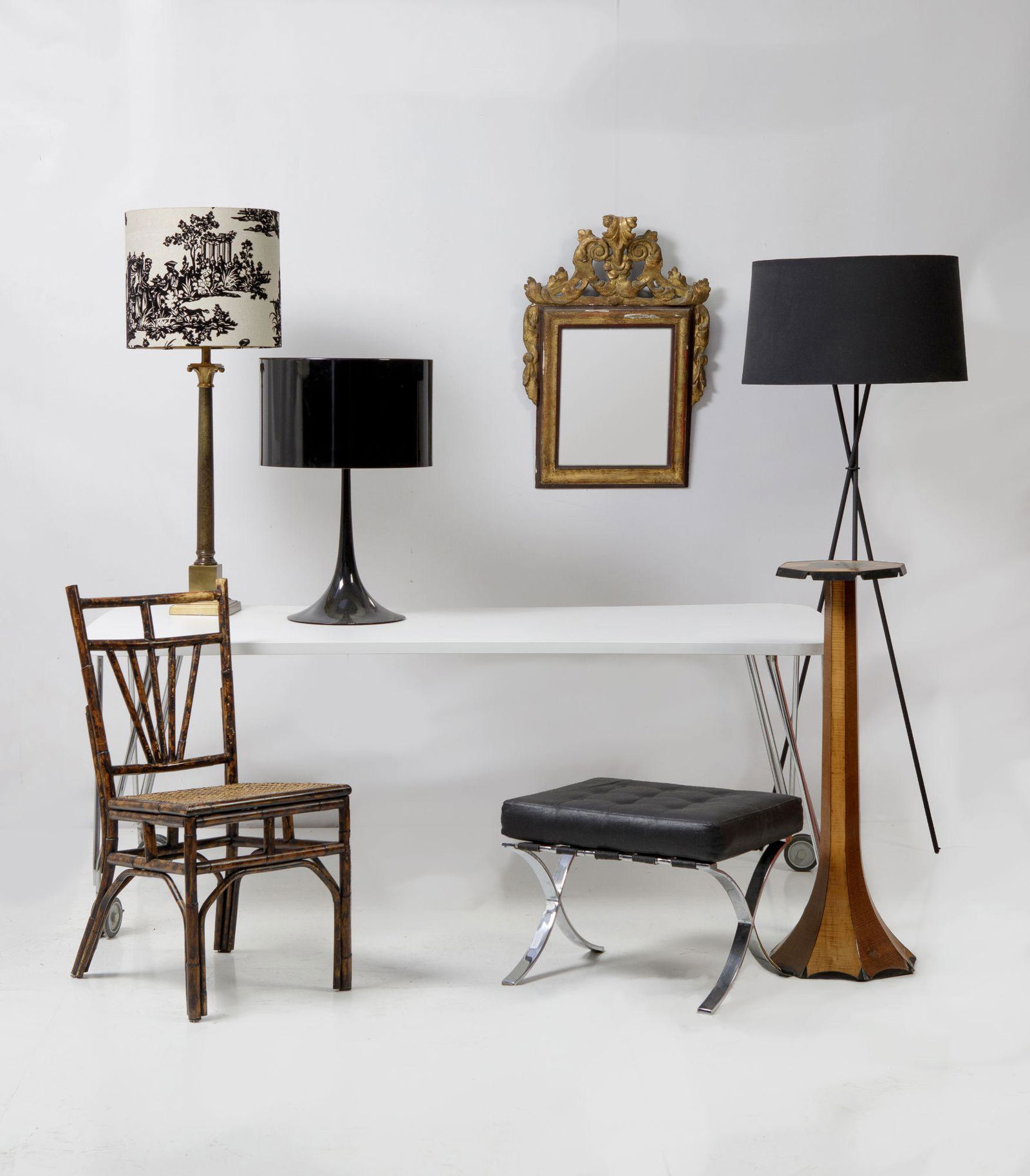 Lot of 4 Lamps, inc. Frederick Cooper.2 days LeftMODERNIST Tripod-base Floor Lamp1950senameled steel, nickel-plated brass, three-way socket, stri...THREE ANTIQUE CAST BRONZE TABLE LAMPSMar 07, 2026Armaturhantverk Göteborg, Articulating Floor Lamps, Brass, Fabric, Sweden, 1960sSwedish Modern, Adjustable Floor Lamp, Teak, Lacquered Metal, Sweden, 1960sLarge Retro Style Contemporary Standard LampAntique Empire Revival Candelabra Table Lamps - PairVintage Postmodern Crane Form Floor Lamps - PairSwedish Modern, Floor Lamp, Teak, Brass, Sweden, 1960sSide Table & Floor LampMar 06, 2026Jean Royere (After) - Floor Lamp3 days LeftContemporary Wrought Iron Floor Lamp Black Finish 66.25 in3 days LeftCONTEMPORARY METAL FLOOR LAMPMar 08, 20263 Art Deco style floor lamps. Second half of the 20th century.2 days LeftMid-Century Style Black Metal Floor LampMar 10, 2026Triple Light Floor Lamp