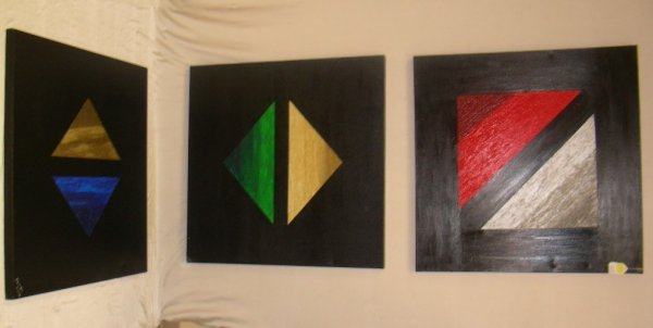 TRYPTIC PAINTING COLORED TRIANGLES REUVEN 2002
