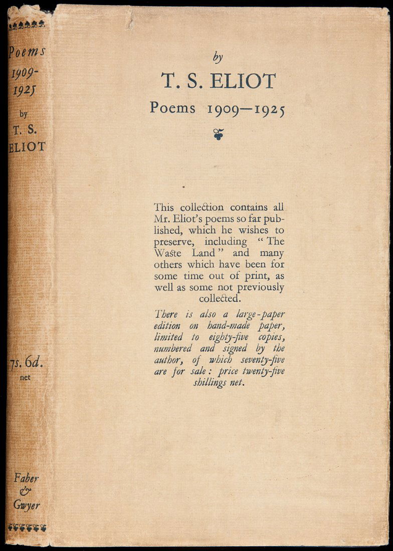 T.S. Eliot Poems, 1909-1925 in dust jacket