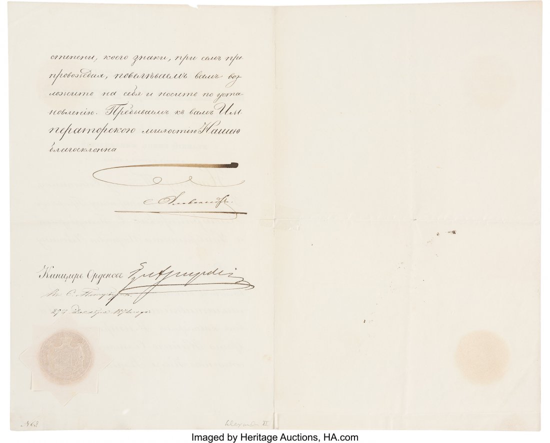 Tsar Alexander II Document Signed "Alexander II