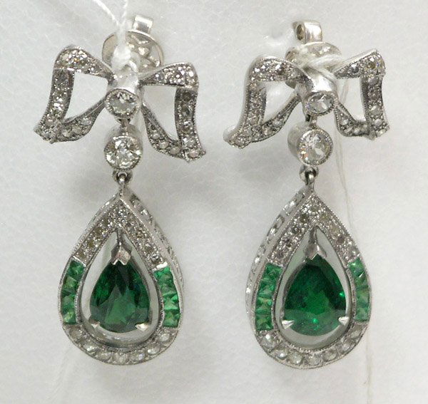 Sold8.77ct natural vivid green tsavorite diamond dangle earrings 18kt cluster vine+MAGNIFICENT JEWELS Dangling Cluster Vine Tsavorite & Diamond Earrings 7.65ct. Natural Vivid Green Tsavorites average each: 6.5 x 4.2mm Full cut oval brilliants. Excellent, clean clarity & transparentSee Sold Price