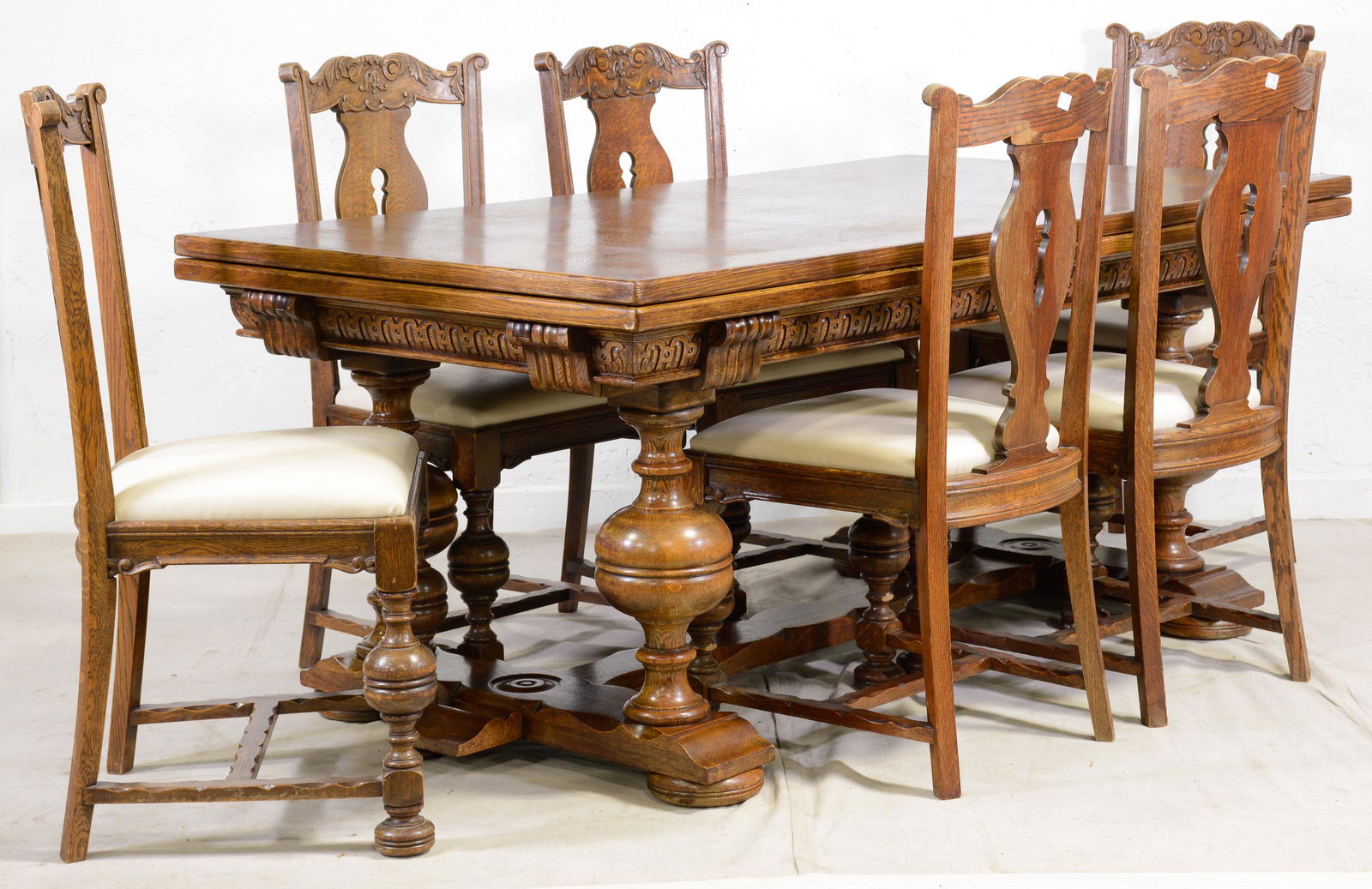 EIGHT FRENCK OAK AND RUSH DINING CHAIRS INCLUDING TWO ARM CHAIRS IN THE MANNER OF DUDOUYT C 1940.4 days LeftAntique Mahogany Table & 6 Chairs.Apr 12, 2026Set of 8 Jacobean Style Oak and Leather Dining Chairs Circa 18702 days LeftMahogany Chippendale Dining Table with Chairs Ball Claw Feet Shell Carving Set17 hrs LeftStickley Brothers Style Antique English Arts & Crafts Carved Oak High Back Dining ChairsApr 28, 2026STICKLEY DINING TABLE & CHAIRS7 days LeftDON RUSEAU CUSTOM OAK WOOD DRAW-LEAF DINING REFRACTORY TABLE (2 OF 2)Mar 21, 2026Large Italian Style Oak Parquetry Monastery Table, 20th c., H.- 30 in., W.- 102 in., D.- 39 1/2 in.6 days LeftVintage Parquetry Top Louis XV Style Dining TableApr 12, 2026Eight Carved Mahogany Chippendale-style Dining Chairs6 days LeftJohnathan Charles Jacobean-style Refectory Table6 days LeftHooker Brasserie Friendship Oak Dining Set with 6 Stools Antique White Wash Finish18 hrs LeftFrench Renaissance Style Parquetry Oak Extension Dining Table, 19th c., H.- 28 3/4 in., W.- 62 3/46 days LeftCentury Dining Table & 8 Maitland Smith Chairs.574 Lots Away(3) ENGLISH OAK BANDED NESTING TABLES ON TURNED LEGS7 days LeftDunbar Dining Table with 2 Leaves. Thick oak banded Top on Column Legs.Mar 31, 2026