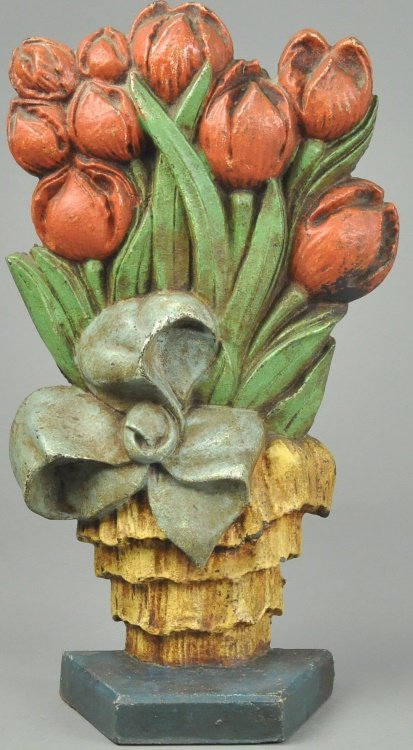 SoldAntique Albany Foundry Company Tulips DoorstopAntique Albany Foundry Company Tulips Doorstop. Marked on verso, old paint. 8.5 inches H x 7 W x 3 deep.See Sold Price