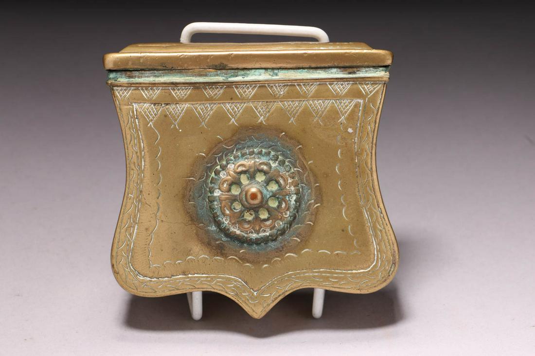 Elegant Neoclassical Jewelry Box with Brass Hardware and Felt Interior2 days LeftChinese Retro Style Bronze Jewelry Box Three Part6 days LeftJade and gold dragon-phoenix pattern cover box from HotanFeb 24, 2026A Hetian jade-wrapped gold dragon and phoenix pattern lid box from the Liao and Jin dynastiesFeb 27, 2026A FINE HARDSTONES INLAID SILVER-GILT BOX WITH COVERMar 01, 2026A Exquisite Gold and Silver-Inlaid Bronze Auspicious Beast Pattern BoxMar 20, 2026A square bronze incense burner with four legs and scroll-shaped handles, bearing the mark of the8 hrs LeftA Han Dynasty copper cuo gold and silver beast pattern square lid boxFeb 28, 2026(R) A LACQUERED SUZURIBAKO (WRITING BOX) AND TABAKOBON (PORTABLE BRAZIER SET) , JAPAN 19TH CENTURY5 days LeftA Exquisite Gold and Silver-Inlaid Bronze Auspicious Beast Pattern BoxMar 15, 2026Enamel Drawing Gold Drawing Eight Treasure Pattern Porcelain Incense BurnerFeb 26, 2026A GILT BRONZE INLAID GEMSTONE STORAGE CASKET5 days LeftA silver-gilt treasure lid boxFeb 28, 2026Decorative Vintage Antique Middle Eastern Brass VaseFeb 26, 2026Treasure old collection inlaid crystal rouge powder boxFeb 27, 2026Antique Porcelain Dresser Box with Relief Decoration3 days Left