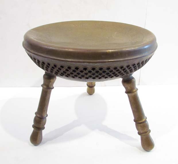 Turkish Hammered Brass Three Legged Stool
