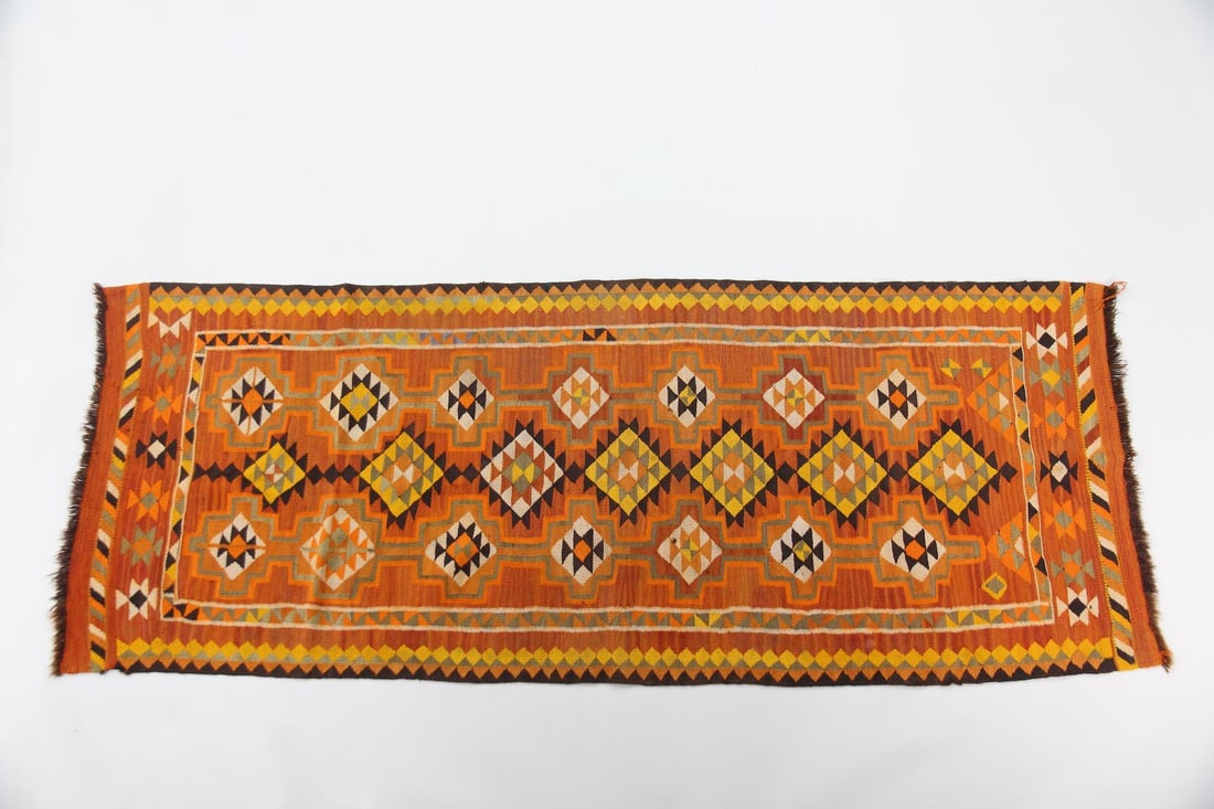 Vintage Turkish Kilim Handmade Wool Rug 4'1 x 8'3 Multicolor Tribal DesignBidhaus4.2(840)$1006 days Left