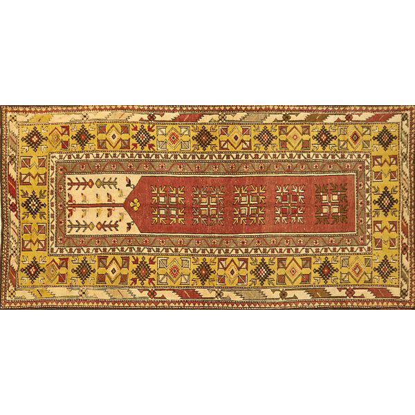 Vintage Anatolian Hand-Knotted Wool Rug Geometric Design Red Yellow Blue 3'8 x 5'10Mynt Auctions4.4(832)$1005 days Left