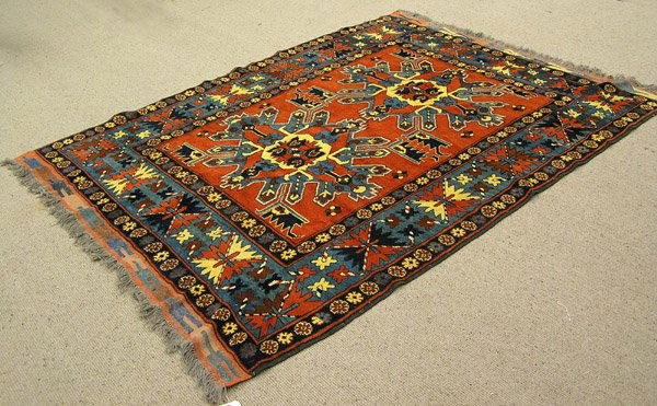 SoldHAND KNOTTED ANTIQUE WOOL TURKISH GHIORDES 11 X 9Hand knotted antique wool on wool Turkish Ghiordes rug with some vegetable dyes, having a full field of palmettes and tendrils framed by eight small borders all in cream, orange, pale blue, and chocolSee Sold Price