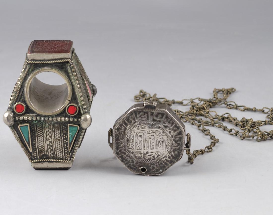 Turkmen Seal Ring and Islamic Silver Amulet Case