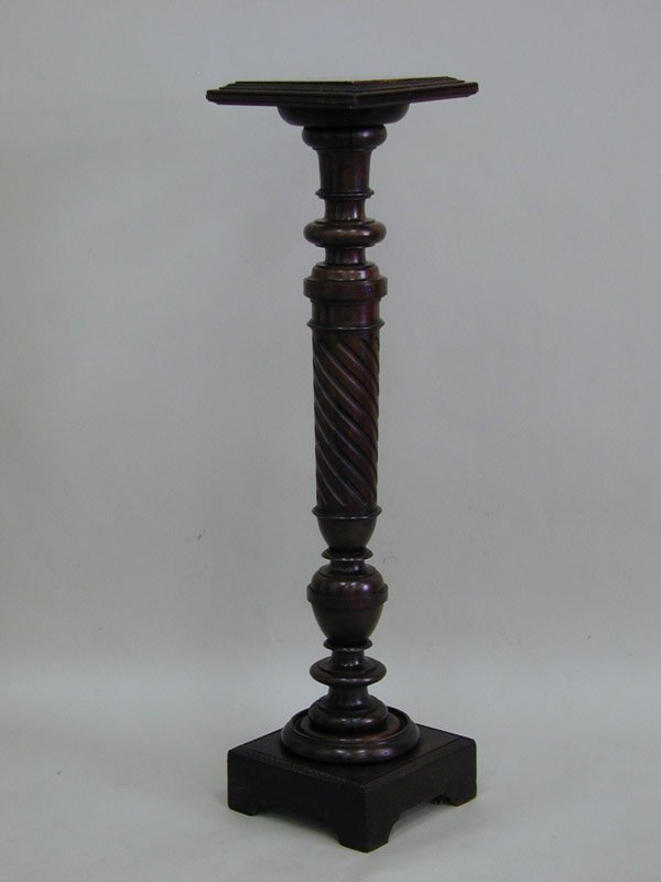 SoldEastlake Victorian Walnut Pedestal StandEastlake style Victorian walnut pedestal stand, 4 sections, turned center column with applied mount s along base, applied cast metal paw feet, late 19th c., 41 1/2" high x 16 3/4" x 17"See Sold Price