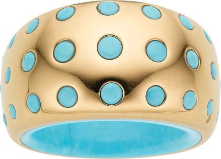 14K YELLOW GOLD RING WITH NATURAL TURQUOISE SIZE: 4.5