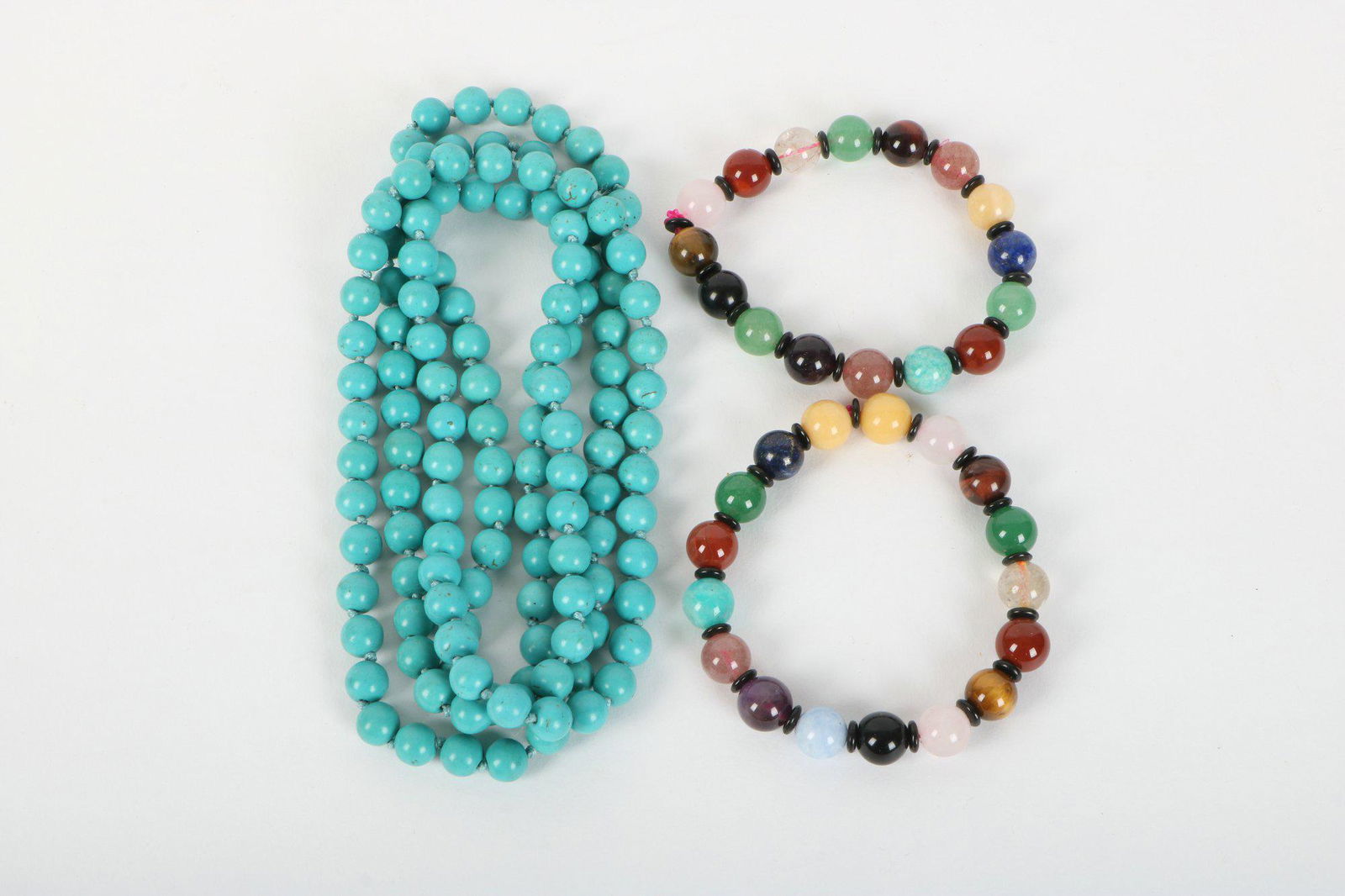 Turquoise necklace and two gemstone bracelets