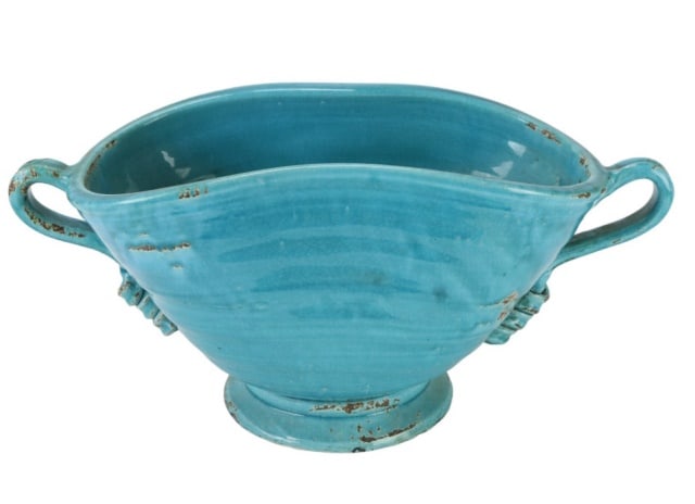 Turquoise Rustic Ceramic Planter or Centerpiece